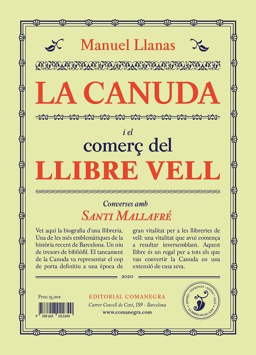 Vet aquí la biografia d’una llibreria. Una de les més emblemàtiques de la història recent de Barcelona. Un autèntic niu de tresors de bibliòfil. El tancament de la Canuda, l’any 2013, va representar el cop de porta definitiu a una època de gran vitalitat per a les llibreries de vell i d’ocasió: una vitalitat que avui comença a resultar inversemblant. Aquest llibre és un regal per a tots els que van convertir la Canuda en una extensió de casa seva.