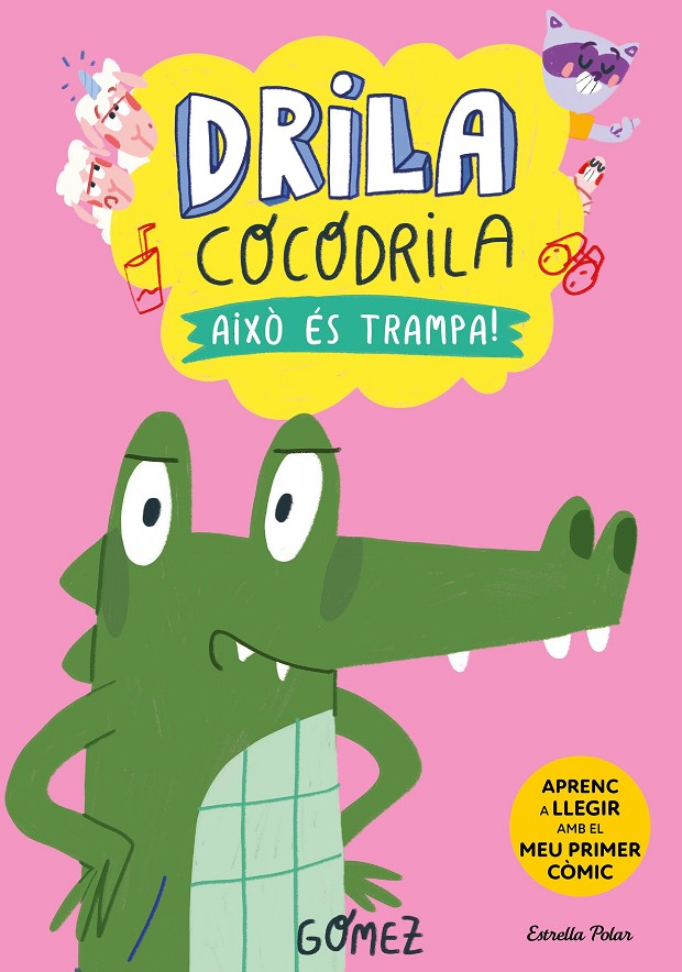 DRILA COCODRILA és una col·lecció de còmics en lletra majúscula per aprendre a llegir protagonitzada per cinc animals peculiars que viuen en un prat molt especial.