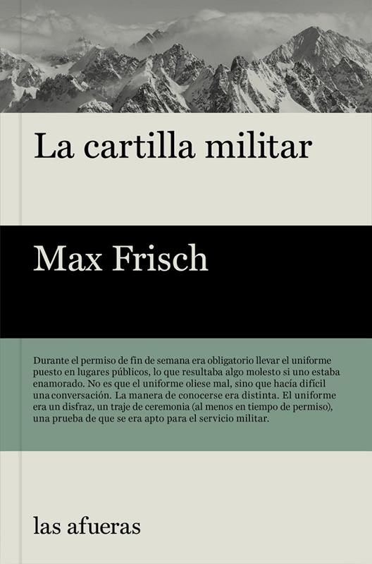Coincidiendo con el ochenta aniversario del estallido de la Segunda Guerra Mundial, Las afueras recupera La cartilla militar, del escritor suizo en lengua alemana Max Frisch. Lejos de ser un libro bélico al uso, la rememoración del servicio militar del autor supone una sucesión de días vacíos de contenido y exentos de cualquier rasgo de heroísmo. Esta experiencia ayudará a Frisch a explorar uno de sus temas predilectos: las tensiones a las que se ve sometido el individuo dentro del grupo y su lucha por no ser subsumido en su interior. El distanciamiento irónico y el uso de una prosa precisa y contenida, hace que en el relato vayan aflorando imágenes de gran belleza que se van entrelazando con sus reflexiones sobre la sinrazón y el absurdo de la guerra.