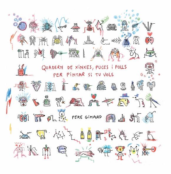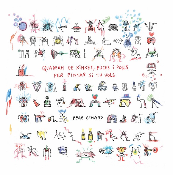 Quadern de xinxes, puces i polls per pintar si tu vols (feliç escissió del Llibre de Meravelles, Libros del Zorro Rojo, 2023) és un projecte interactiu que posarà a prova el pols i la paciència dels nostres petits a l’hora d’acolorir el miler d’éssers diminuts que solquen les seves pàgines i que tan populars són entre les famílies i les escoles. Es tracta principalment dels polls, però també de les puces de les nostres mascotes peludes. Les xinxes, de difícil localització, ja són un altre cantar, però figuren en el quadern perquè, com més gran és la colla, major és l’alegria. Cada poll i cada puça dibuixats en aquest quadern són de veritat, van ser capturats durant anys d’intensa vigilància al cap dels fills de l’autor i al llom del seu gos. Un cop classificats, Ginard només va afegir, per diversió, algun nas per aquí i alguna pota per allà; alguns ulls que imaginava blaus. A altres bestioles les va dibuixar de perfi l, de cara, d’esquena o enamorades. Algunes estan retratades de memòria, dues o tres són el refl ex en miniatura dels millors amics de l’artista, i també hi ha un autoretrat amb barret de palla. Pel que fa a les xinxes, aquestes sí que són totes inventades.